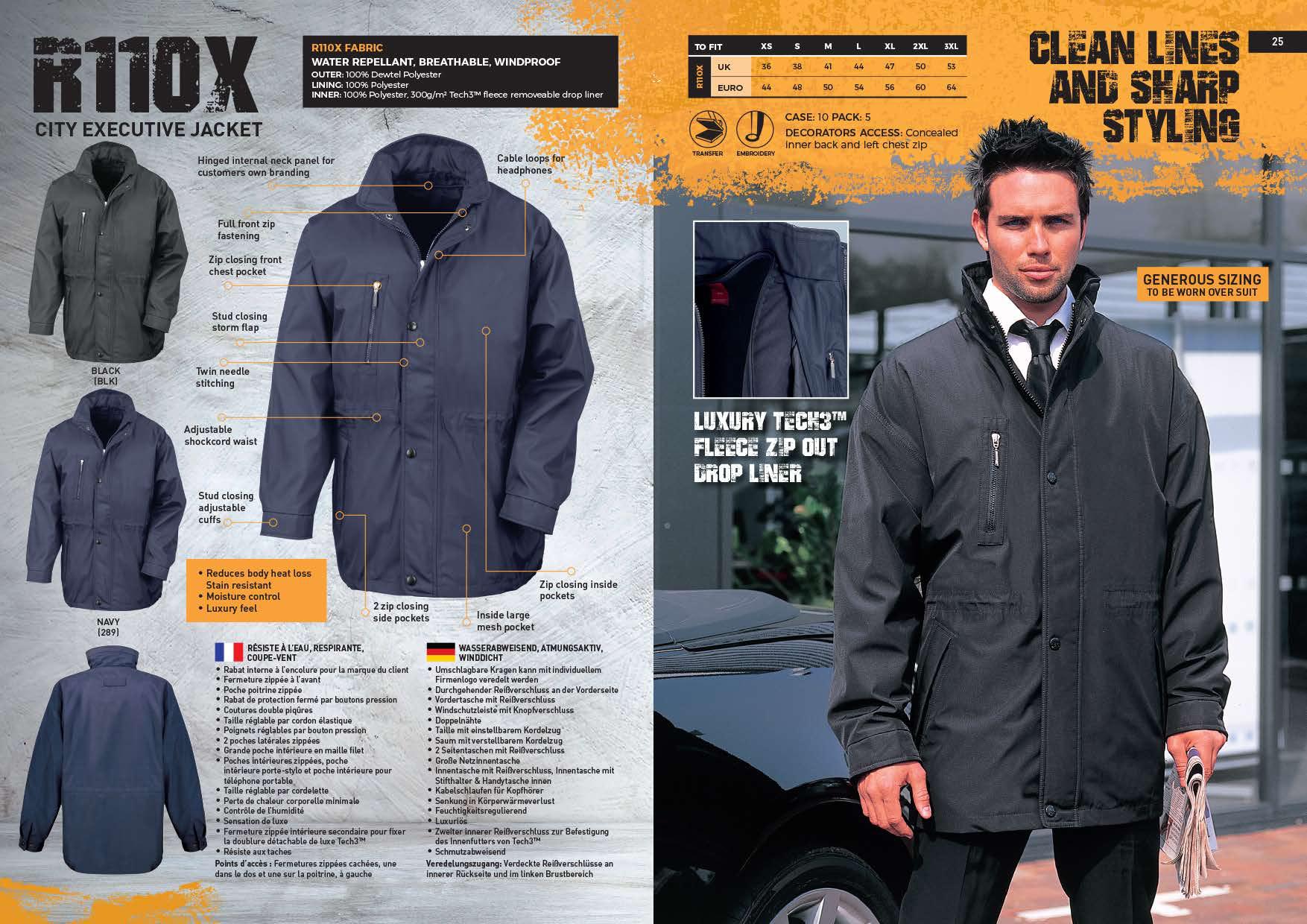 Moderne Unisex-Ganzjahresjacke mit herausnehmbarem Thermo-Innenfutter. Für alle, die "mehr" erwarten. Länge über Sakko / Blazer reichend. Bitte beachten Sie die Übergrößenzuschläge ab Größe 3XL.