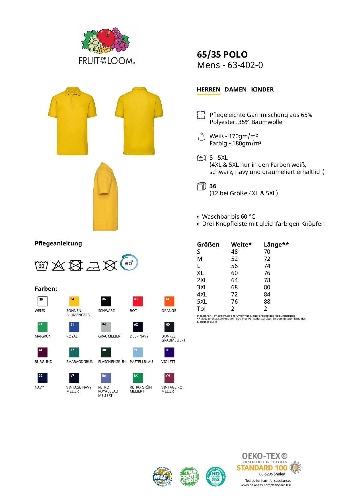 • 65% Polyester / 35% Baumwolle